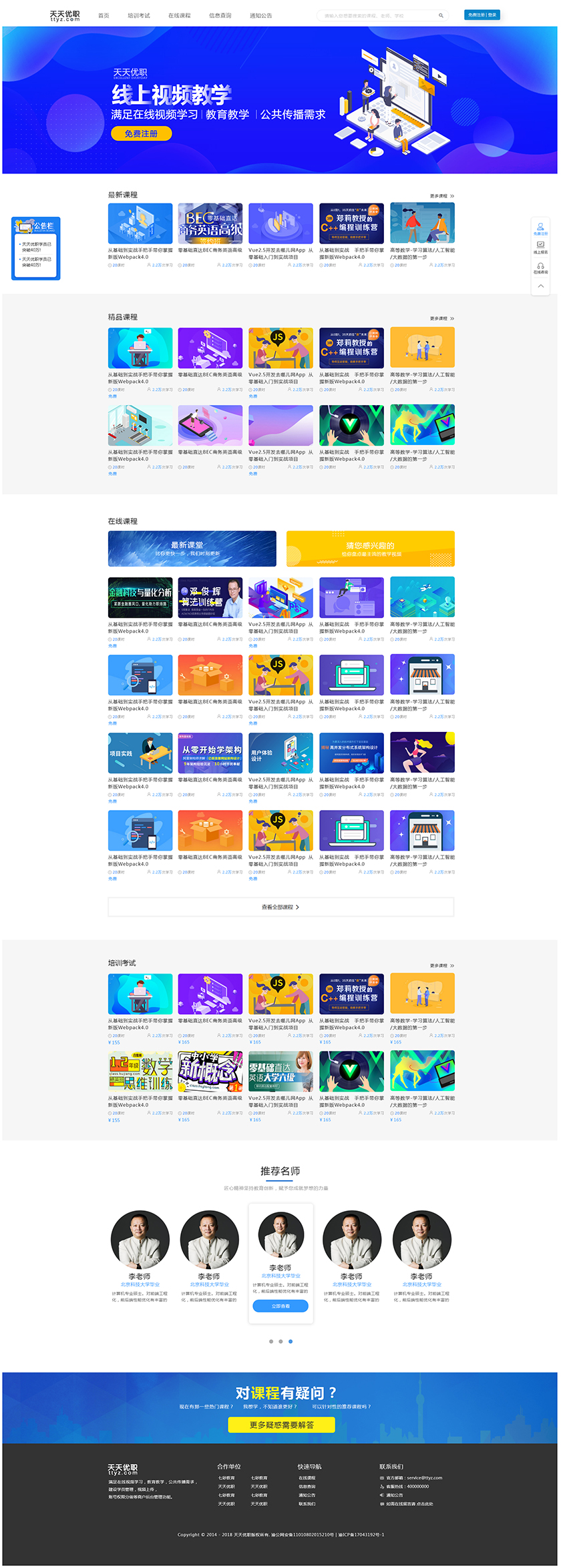 Project Description 满足在线视频学习,教育教学,公共传播需求, 建设学员管理,视频上传, 账号权限分级等商户后台管理功能 Official website address 渭南http://tiantianyouzhi.com/ I want to share